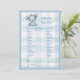 Cinzas adoráveis e ursinho de bebê azul para o chá de fraldas de um menino O que há no seu jogo de chá de fraldas da bolsa. Cobertura de xadrez com borda pontilhada azul para fundo. Modelos fornecidas atrás.