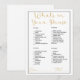 Apresentando "O que há na sua bolsa" - o jogo de chá de panela que adiciona um toque de entusiasmo e diversão à celebração! Prepare-se para embarcar numa viagem encantadora através das suas bolsas, descobrindo tesouros que você nunca sabia que tinha. Com a sua elegante letra dourada, o título "O que está na sua bolsa" brilha com antecipação, definindo o tom para uma experiência cheia de diversão. Descubra os segredos escondidos dentro da bolsa enquanto embarca em uma caça divertida pelos itens listados nos cartões de jogo. Cada item possui um valor de ponto diferente, variando de 5 a 20 pontos, adicionando um elemento suspenso à medida que você aumenta a pontuação. Os itens do jogo, apresentados em uma fonte clássica de bloco preto, garantem clareza e mantêm uma estética química. Os nomes dos itens e os valores dos pontos que os acompanham são enfeitiçados numa fonte graciosa e cursiva de ouro, melhorando o fascínio do jogo. Avançado por uma elegante borda negra, "O que há na sua bolsa" exude sofisticação e charme, fazer-a uma adição deliciosa a qualquer decoração de chá de panela. Enquanto você e seus colegas mergulham em suas bolsas, verificando os itens que você escondeu, o riso e a camaradagem vão fluir livremente. Concorra pela maior pontuação e confie na alegria de desencadear tesouros inesperados. Acompanhe o seu progresso com as lindas etiquetas de "nome" e "total" escritas, acompanhadas de linhas de ouro elegantes que o guiam. Este jogo incentiva a conexão e a camaradagem à medida que você troca histórias e anedotas sobre os itens que você coletou em sua bolsa. Faça do seu chá de panela uma experiência inesquecível com "O que há na sua bolsa". Revele-se no entusiasmo da caça, comemore a camaradagem e crie memórias duradouras enquanto você descobre o fascinante conjunto de itens que seus amigos carregares com eles. Prepare-se para explorar, rir e marcar seu caminho para a vitória neste jogo encantador que captura a essência da alegria e da união.