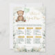 Este elegante jogo de chá de fraldas apresenta um ursinho de pelúcia bonito segurando um balão em forma de coração enquadrado com uma bela camada de água verde.