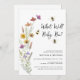 Você está planejando uma revelação sobre o gênero das abelhas? Esse encantador gênero boho revela convite é decorado com abelhas aquáticas e flores silvestres em tons pastéis. Diz "What Will Baby Bee" na tipografia de na moda. Facilmente personalizável. A trabalho de arte é de Michele Davies e é exclusivamente vendida através do Zazzle. Original Watercolor © Michele Davies.