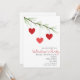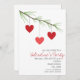 O convite de festas de uns namorados que caracteriza uma ilustração de três corações vermelhos que penduram do ramo de uma árvore verde. Personalize o texto com detalhes de sua ocasião. Porte postal e etiquetas de harmonização Look for no Paperie de Jill.