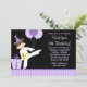 Um convite temático do aniversário das artes marciais bonitos para meninas. Caracterizando uma ilustração de cabelo marrom da menina que veste uma correia amarela. Mostrado nas máscaras do roxo e do preto. Aperfeiçoe para uma festa de aniversário feminino de Taekwondo ou de karaté. Personalize facilmente com sua informação do partido.