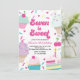 Sete é doce! Sorvete, Sprinkles e convite para aniversário de bolo.