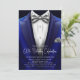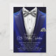 Elevem a sua celebração com o convite de aniversário de nossos homens, com um design azul real e um smoking prateado, com gravata de prata clássica, colete e praça de bolso. O texto festivo acrescenta um toque de sofisticação, fazer perfeito para um aniversário formal, clássico, de número, festa de aposentadoria ou evento. Personalize este convite para na moda com os detalhes do seu evento para uma celebração inesquecível e polida. Ideal para quem procura um convite de aniversário refinado e sofisticado.