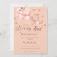 Teddy Bear "We Can Barly Wait" Rapariga Convite para Chá de fraldas com um ursinho de pelúcia de cor d'água segurando balões e fundo de estrela rosa. Personalize para torná-lo exclusivo.Para mais personalização, clique no botão "editar design".
