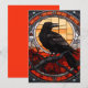 Apresentado em vidro colorido, um raspão assustador e assustador vira seu olhar no espectador.