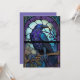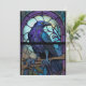 Apresentado em vidro colorido, um raspão assustador e assustador vira seu olhar no espectador.