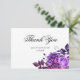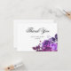 Convites Obrigada floral. Nota de casamento com flores roxa