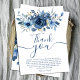 Convites Obrigado azul Elegante chá de panela Floral de inv