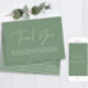 Chá de fraldas escrito moderno sábio verde-elegante obrigado do cartão-postal design. Design ideal neutro em termos de gênero.