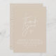Chá de fraldas escrito moderno beige natural elegante obrigado do cartão-postal design. Design ideal neutro em termos de gênero.
