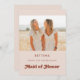 Um cartão com fotos simples e elegante que mantém a obrigado da sua dama de honra. Um tema retro-chic: adote este design de vintage e na moda para tipografia para sua papelaria de casamento, com um tema cor-de-rosa pêssego. Fácil de misturar e combinar com nossa papelaria semelhante disponível em laranja queimada, teracota e açúcar marrom. Cores de texto e planos de fundo totalmente personalizáveis.