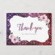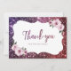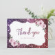 Placa fina roxa brilhante brilhando fundo brilhante e floral cor-de-rosa com script "obrigado você" no centro, elegante e na moda, excelente, obrigado cartas para festa de aniversário, chá de panela ou chá de fraldas. Papel de acabamento Semibrilho selecionado.