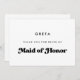 Um cartão de texto simples e elegante que mantém para obrigado sua dama de honra. Um tema retro-chic: adote este design tipográfico ligeiramente vintage e na moda para sua papelaria de casamento, com um tema clássico preto e branco. Cores de texto e planos de fundo personalizáveis.
