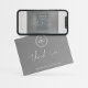Espessura de 18 pt / Gramatura de 120 lb. Branco suave, textura delicada.