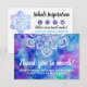 Muito ousado e vibrante! Um giro lindo de tons de cobalto, aqua, rosa e púrpura de aquarela define o fundo perfeito para uma intrincada design de mandala com texto na moda moderno. Este design novo e revitalizante é ideal para butiques, fornecedores, reiki, massagem, yoga, etc., metafísicos, holísticos ou iluminados. ・ Personalize-o! Clique no botão "Personalizar" para alterar fontes, dimensionamento e layout. Os ícones das mídias sociais podem ser movidos ou removidos, se desejar. ・ Navegue na coleção Inhale Inspiration para todos os produtos coordenadores de marcas e marketing, inclusive cartões de visitas, cabeçote de letras e muito mais!