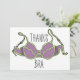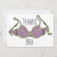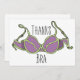 Um sutiã verde limão roxo e chave, com o texto dizendo, "Obrigados Bra."