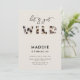 Um modelo moderno, elegante e chic do 40º convite de festas com um tema "Vamos ficar selvagem", com tipografia moderna e letras de bloqueio cobertas de pele-leopardo (este é um efeito digital). Uma escolha encantadora para uma jovem e selvagem com quarenta anos.
