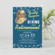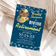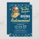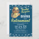 Convites de festas de aposentadoria com temas oceânicos com fundo azul que pode ser mudado para qualquer cor, um capacete de mergulhadores antigos, luzes de cordas e um modelo de celebração moderno que é fácil de personalizar.