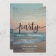 Praia com pôr do sol, luzes de cordas e guião. Salve a data que pode ser personalizada com seu nome. Selecione o botão "personalizar" para alterar o estilo, a cor e o tamanho da fonte.
