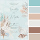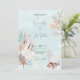 Esta design apresenta um belo fundo de turquesa aqua pálido com uma sensação de textura submarina, rodeada por azul empoeirado, castanho, pêssego e conchas brancas, coral e vida marinha. Perfeito para o casamento de destino ou praia. Criado pela "Simply Farmhouse Press", este design faz parte da suíte de casamento Modern Aqua Ocean & Shells.
