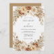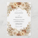 This design features a warm, earthy color palette with rich ochre tones. Cascading botanical arrangements of roses and foliage create a full, abundant display, evoking a rustic and natural feel. The artwork showcases a detailed illustration of blooming flowers and leaves.