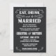 Convites ocidentais do casamento do estilo do poster do vintage preto de serapilheira -- Coma, beba, e é casado -- Swirly, rolos rústicos encaracolado e tipografia ocidental velha do estilo da velho-forma no fundo preto tingido natural de serapilheira. Adicione os nomes dos noivos e a informação wedding neste modelo fácil de usar. Elegante mas divertimento e rotulação romântica, retro do estilo do poster do bar pode ser alterado para seu tema formal ou semi-formal do casamento. O estilo moderno ocasional é perfeito para casamentos contemporâneos na moda chiques com um toque do divertimento do encanto ocidental sul do vaqueiro para casais tradicionais. Contacte-nos por favor para a ajuda com personalização se você precisa a sala adicional para seus detalhes do casamento. Outros tamanhos e estilos disponíveis, junto com o porte postal de coordenação, acessórios nupciais, favores do chá, e fundamentos wedding do jogo para noivas diy em um orçamento. NOTA: Mostrado em cartões padrão do convite do tamanho A7.