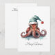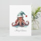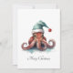 pintura aquarela de um polvo rosa giro vestindo um chapéu de inverno turquesa no estilo natal