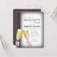 Este convite de Festa de solteira foi feito tendo em mente a menina feminina. O fundo é preto com pontos cor-de-rosa acentuados com dois copos de champanhe com um arco cor-de-rosa em cada um deles e um anel de diamante substitui o "o" na palavra soleira. O texto personalizável permite que você adicione os detalhes de sua parte.