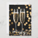 Par de flautas de champanhe com confete dourado e luzes de chavão em preto para uma festa de Ano Novo. Todo o texto pode ser alterado.