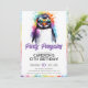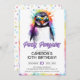 Celebre o aniversário do seu filho em estilo com nosso vibrante e enérgico convite de aniversário personalizável com um pinguim legal vestindo óculos de sol em meio a um pano de fundo de salpicos vívidos de aquarela em matizes arco-íris. Este convite exude uma vibração fria perfeita para o dia especial do seu filho. A metade inferior é reservada para detalhes personalizados, com o nome destacado em fontes roxas personalizáveis. Prepare-se para levar um soco com este convite, e veja o Pinguim com a coleção de óculos Sunglass, incluindo guardanapos de papel, portas copos, pratos, copos, notas de agradecimento e etiquetas de presentes para completar o seu suite de festas!