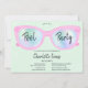 Óculos holográficos da piscina moderna Doce 16 com óculos de sol rosa e giro, cor-de-rosa, e holográficos, num fundo de água verde-claro, a cor pode ser alterada. Um convite de festas de verão legal e divertido