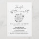 This invitation is perfect for the modern bride looking for a witty and distinctive theme. It features the elegant, handwritten phrase "Fresh off the market" and a charming central market/foodie motif, adding a bold, creative twist to your celebration. It’s the ideal choice for a bride who wants an unconventional and joyous pre-wedding party.