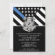 Este design apresenta uma bandeira da polícia com listras pretas e brancas, e uma fina faixa azul de linha também. O crachá da polícia e o texto prateado estão acima de todos os detalhes do partido para os detalhes do polícia aposentado, xerife, capitão ou chefe do partido aposentado.