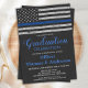 Convites para Graduação da Polícia de Linha Azul-fina. Comemore sua nova academia de polícia, e convide amigos e familiares para a festa de formatura de seu policial com este Convite à Graduação da Polícia de Bandeira Azul Thin. DESIGN americano na Polícia de Sinalizador, cores modernas, preto branco e design azul. Este convite para a formatura do policial também é perfeito para convites de aposentadoria da polícia, mudança de local na personalização. Veja a nossa coleção para combinar presentes de formatura policial, favores de festas de formatura da academia de polícia e suprimentos. COPYRIGHT © 2021 Judy Burrows, Black Dog Art - Todos Os Direitos Reservados. Licenciado pela Academia de Polícia - Convite Oficial Thin Blue Line