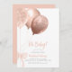 Oh chá de fraldas de bebê com balões de ouro rosa bonito com arco de coquete. Adicione informações sobre nome e chá sobre o dia especial. Simples mas elegante design para uma moda parece que agradará. Veja a coordenação de itens no nosso compro, Encantado Finch.