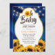 Oh convites rústicos dos azuis marinhos dos girassóis do chá de fraldas & das luzes da corda.