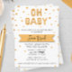 O nosso convite de Chuvade de Bebê com Balão de Folha Dourada Oh Baby é a maneira perfeita de convidar seus amigos e familiares para a sua chuvade de bebê neutra em termos de gênero. Este convite apresenta 'Oh Baby' em balões de folha dourada com pontos de confete dourados espalhados em torno da frase.