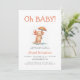This cute baby shower invitation features a watercolor axolotl holding an umbrella in the rain, below the words "Oh BABY!" in orange hand printing font. Personalize the text with the name of the mom-to-be in orange and the details in charcoal gray sans serif font.