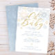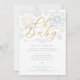 Hospede uma celebração mágica de inverno com este suave convite de chá de fraldas azul "Oh Baby". Adorado com flocos de neve elegantes e falso guião de brilho dourado, é perfeito para um chá de fraldas maravilhoso de inverno honrando um menino. Personalize facilmente com seus detalhes de eventos.