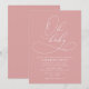 simples roteiro branco convite para chá de fraldas de rosa empoeirada. Personalize o texto e as cores.
