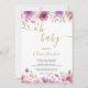 Apresentando terras florais cor-de-rosa e lilás que enquadram os detalhes do seu chá de fraldas, borrifo ou chá em um fundo branco nítido. O inverso tem um bonito fundo rosa. Projetado por Thisnotme©