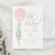 Convites Oh Baby Pink Balloon Eucalyptus Chá de fraldas Inv