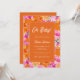 Surpreenda seus entes queridos com este convite elegante para chás de fraldas, com script retrô, cor-de-rosa e laranja, floral e personalizado de sua escolha. Adicione facilmente seus próprios detalhes clicando na opção "personalizar".