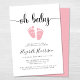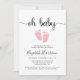 Um convite simples e fofo para uma menina aspergida com "oh baby" num roteiro de na moda com pântanos e uma cor-de-água rosa pastel de pés de bebês. Por baixo, você pode personalizar facilmente os detalhes da aspersão do bebê.