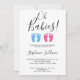 Este convite para na moda gêmeos e chás de fraldas de meninas é decorado com tipografia moderna e pés de bebê com aquarela fofa em azul e rosa. Facilmente personalizável. Original Watercolor © Michele Davies.