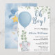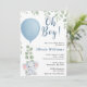 "Oh Boy" Elephant Eucalyptus Blue Balloon Baby Shower Invitation | Cute Greenery Safari Boy Invite