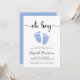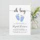 Menino mínimo e bonito dirige por chá convite com "oh boy" em um roteiro de na moda com pestanas e uma cor azul pastel de água de pés de bebês. Por baixo, você pode personalizar facilmente os detalhes do chá.