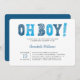 Um convite de chá de fraldas de rapaz elegante, simples e moderno em marinho e feições azuis, um roteiro de tipografia ''oh boy!'' em letras escritas à mão, em uma moda branca. Personalizar com detalhes do evento.