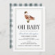Este clássico convite de chá de fraldas do "oh boy" apresenta um fundo branco com um pato selvagem/macaco enquadrado por bordas verdes. O verso apresenta um fundo branco com verificação/xadrez de gingham/búfalos em cinza azul. Personalize para suas necessidades. Você pode encontrar mais produtos correspondentes na minha loja.
